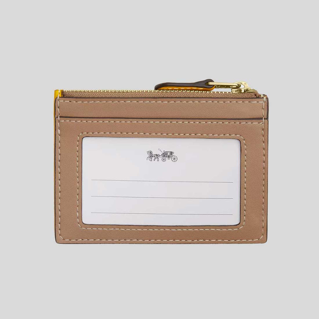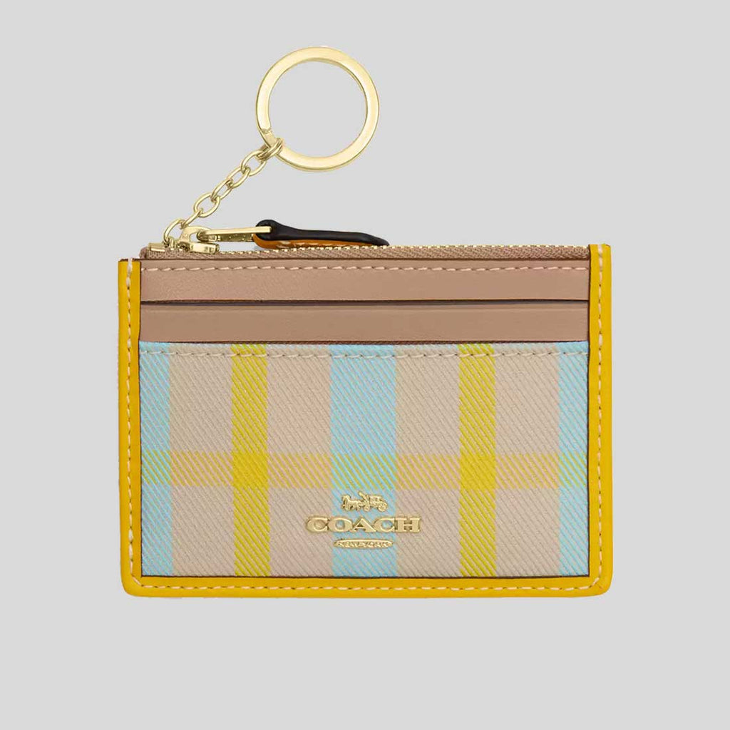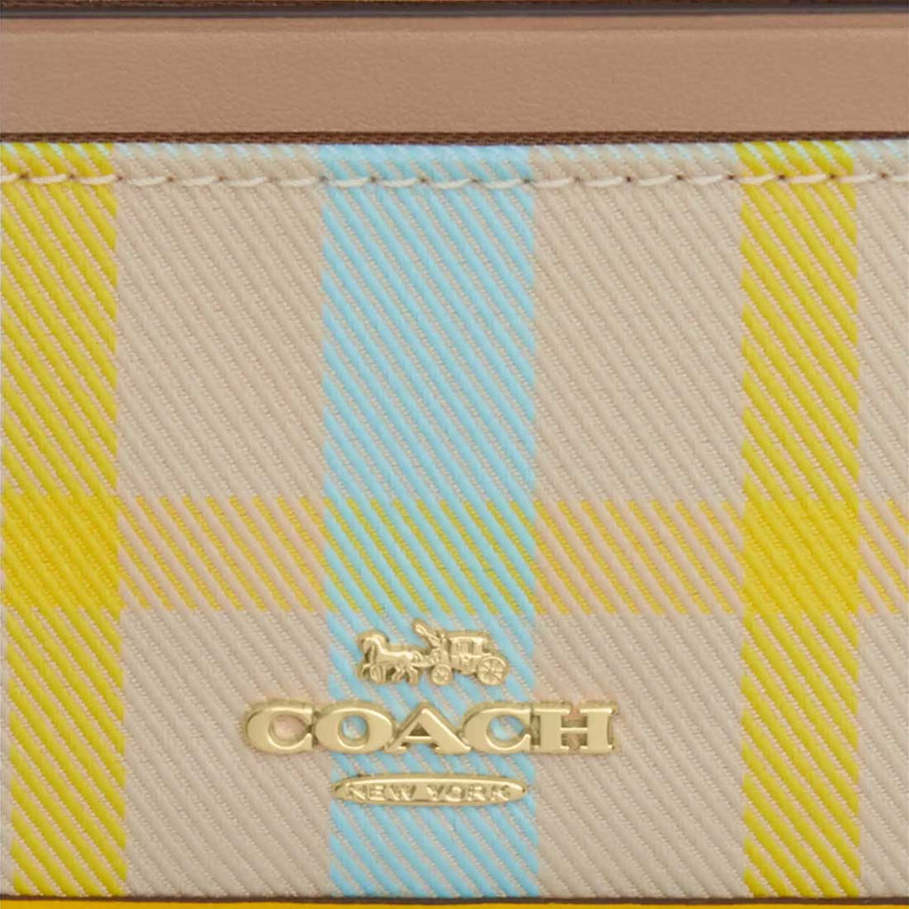 COACH Mini Skinny Id Case With Plaid Print Bright Maize Multi CBL88