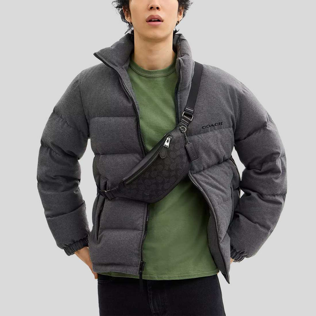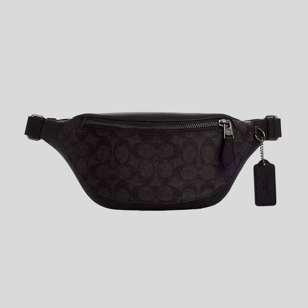 COACH Warren Mini Belt Bag In Signature Canvas Charcoal/Black CW369