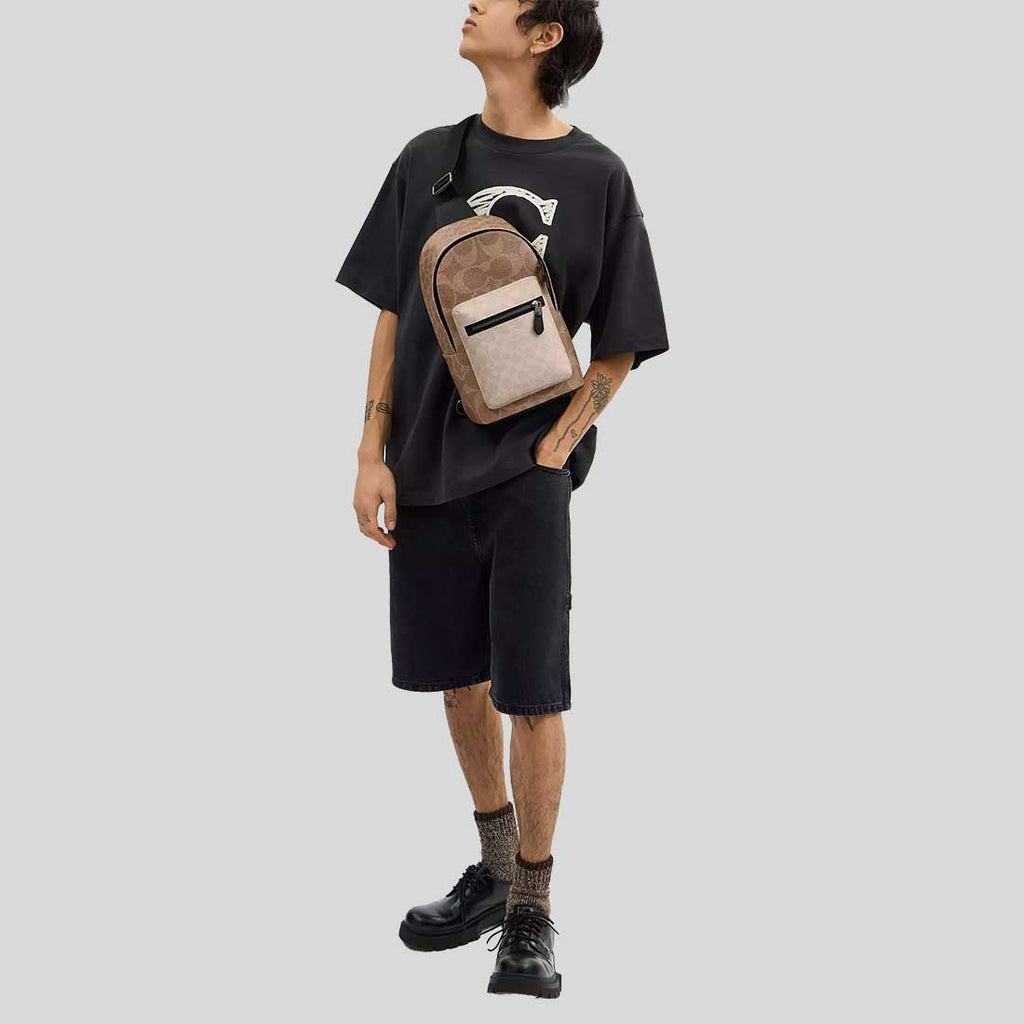 COACH West Pack In Blocked Signature Canvas Sand/Tan CAB60