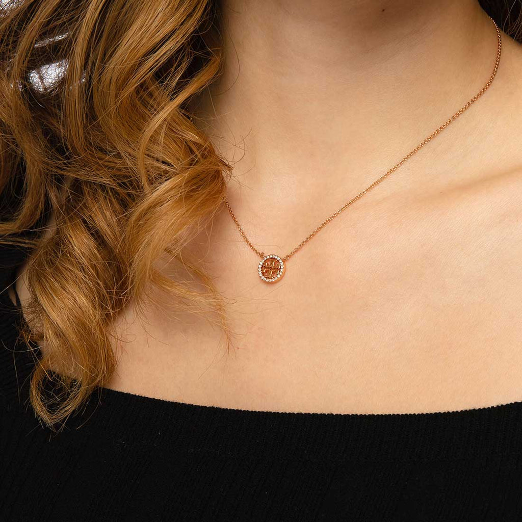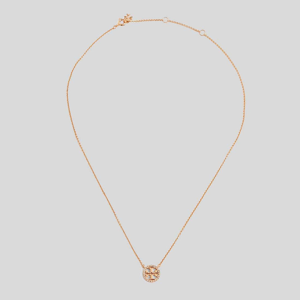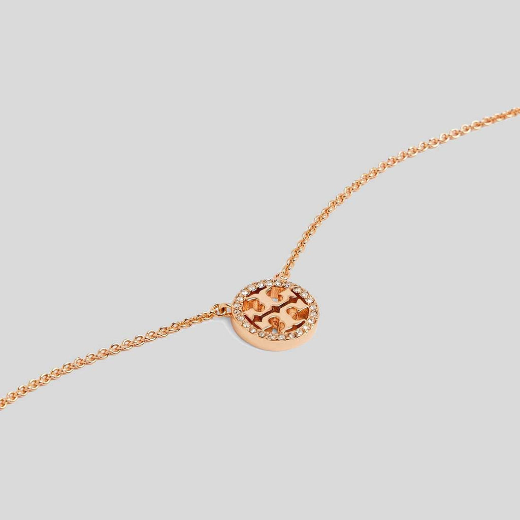 TORY BURCH Miller PAVÉ Logo Delicate Necklace Rose Gold 53420