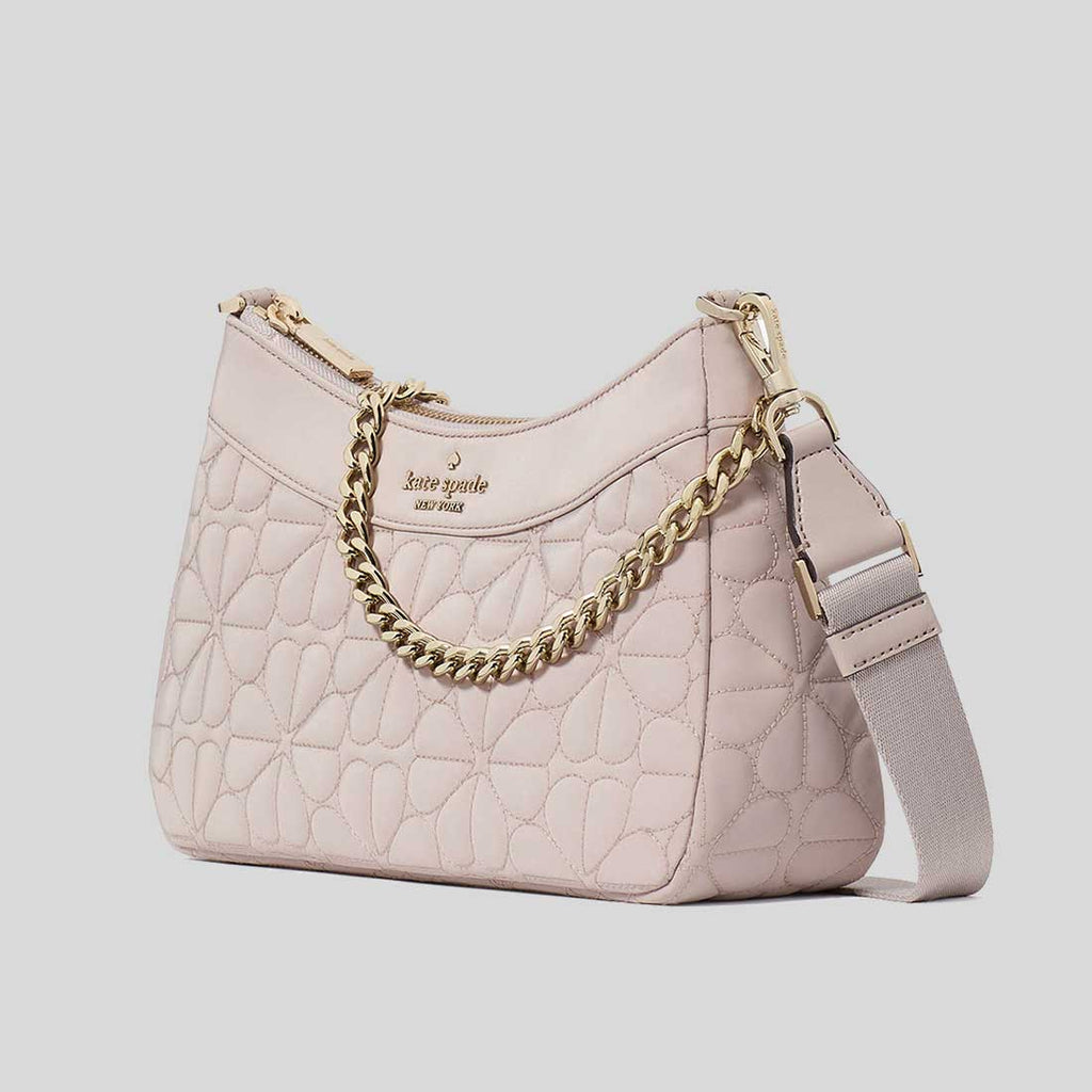 KATE SPADE Spade Flower Quilted Fabric Convertible Crossbody Bag Cozy Grey KK077