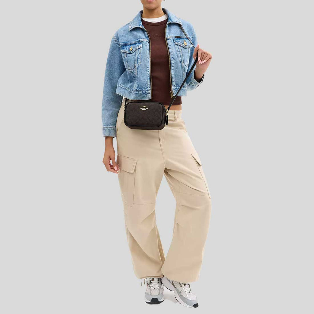 COACH Mini Jamie Camera Bag In Signature Canvas Walnut/Black CY752