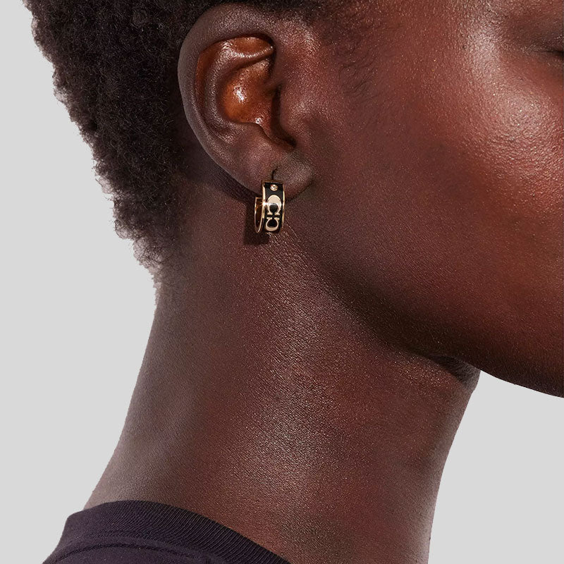 COACH Signature Enamel Huggie Earrings Black/Gold CI903