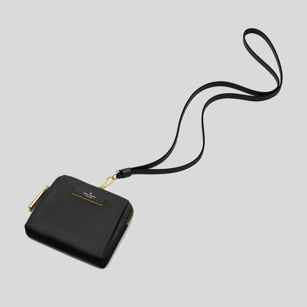 KATE SPADE Carter Nylon Card Case Lanyard Black KL878