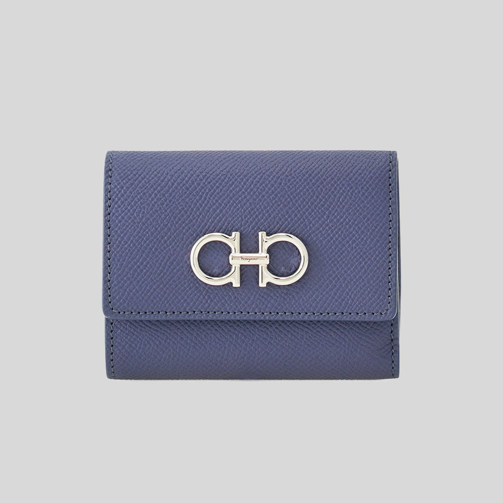 FERRAGAMO Calf Leather Trifold Wallet Graphite 785173