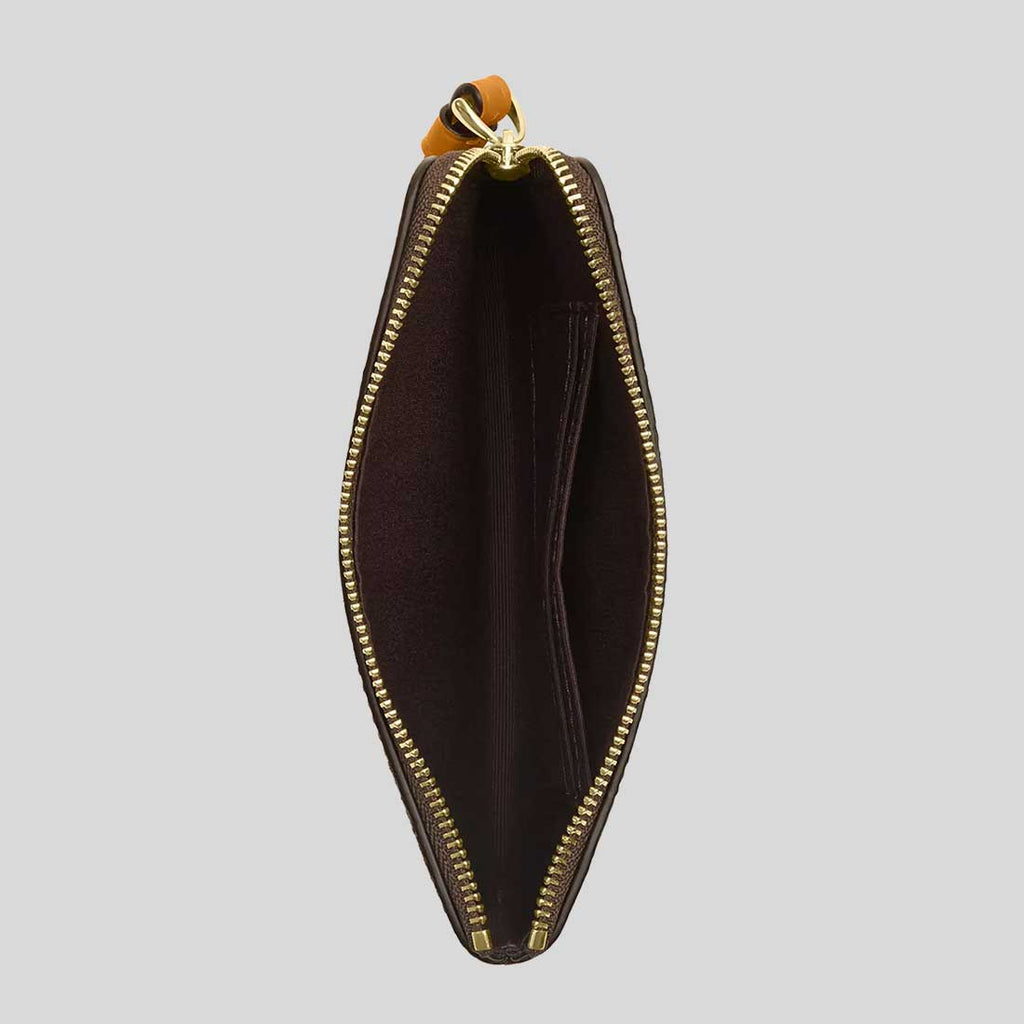 COACH Corner Zip Wristlet In Signature Canvas With Floral Print Walnut/Yellow CCL19