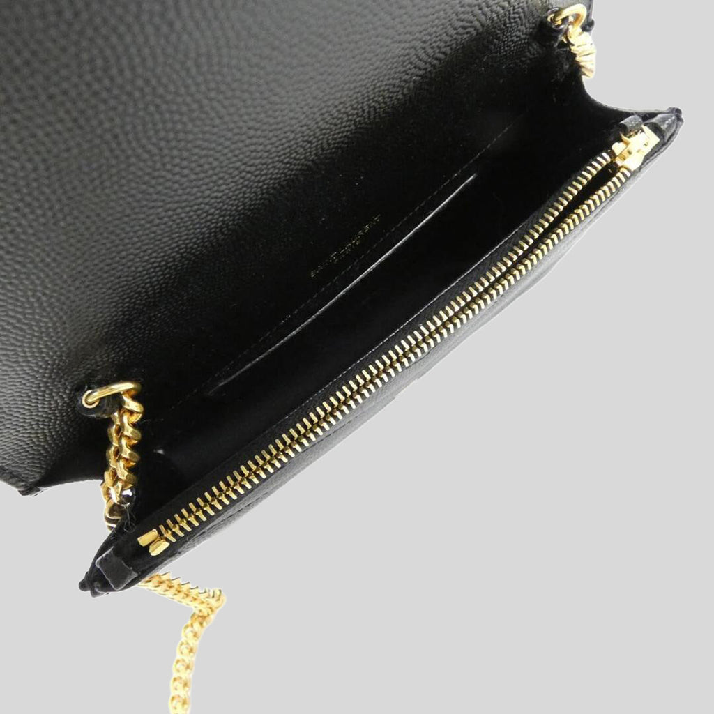 SAINT LAURENT YSL Matelasse Envelope Chain Wallet In Grain De Poudre Embossed Leather Black 857605BOW01