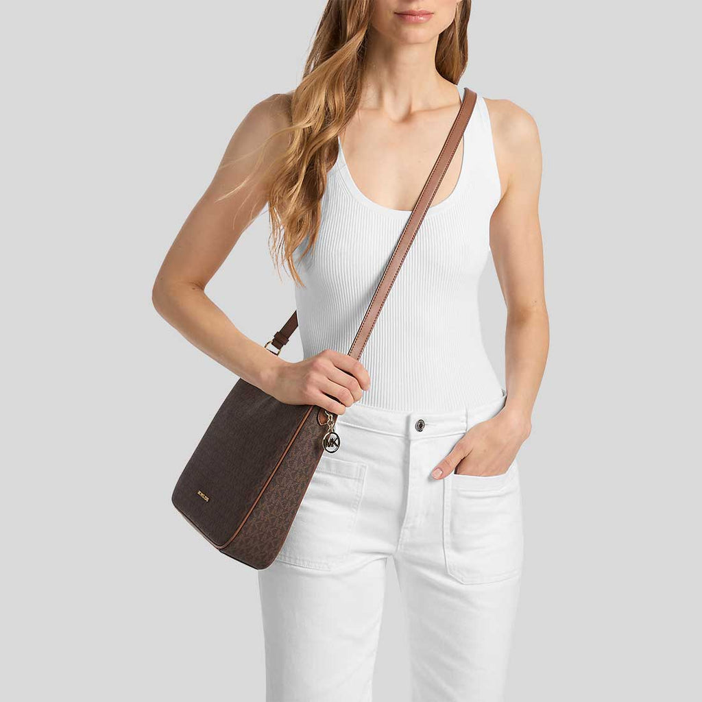 MICHAEL KORS Nayla Medium Signature Logo Messenger Bag Brown 35S6G5ZM2B